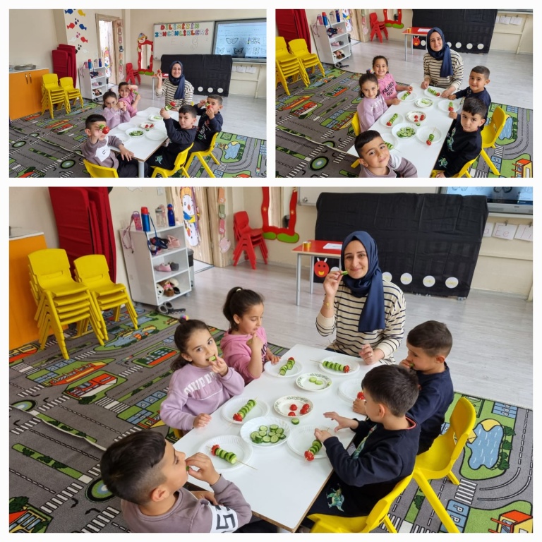'Hakkari Eğitimini Geliştirme ve İyileştirme Projesi' kapsamında Okul Öncesi öğretmenlerimiz Öznur GÜMÜŞTEKİN ve Hatice Kübra DEMİR tarafından 'Erken Çocukluk' konusu ele alındı. Proje Eric CARLE tarafından yazılan 'Aç Tırtıl' kitabı üzerinden yürütüldü.Kitap çocuk edebiyatı alanında birçok ödül almış, grafik tasarımı ile de ödüle layık görüldü. Tok Tırtıllar! Sağlıklı sebzeler kullanılarak çocuklarla birlikte tırtıllar hazırlanır. Çocuklar salatalık ve domatesleri bir araya getirerek kendi tırtıllarını hazırlarlar. Hazırlanan tırtıllar tabağa yerleştirilir ve afiyetle yenir.